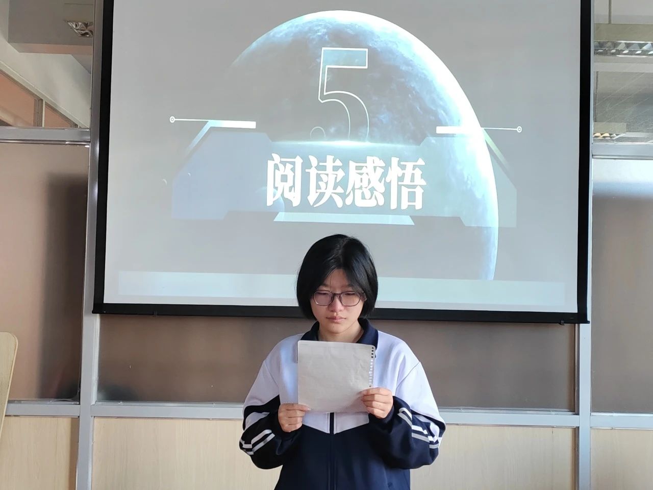 在读书心得分享的诵读环节,邹晓杏、欧阳妍、陈义豪、蔡智翊、杨思远、杨馨璇六位同学分别分享了自己的阅读感悟和喜爱的段落。