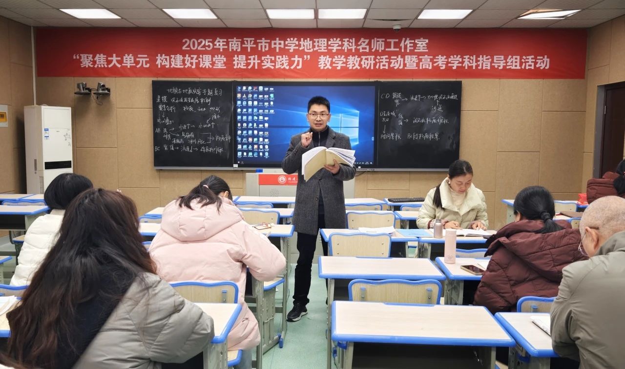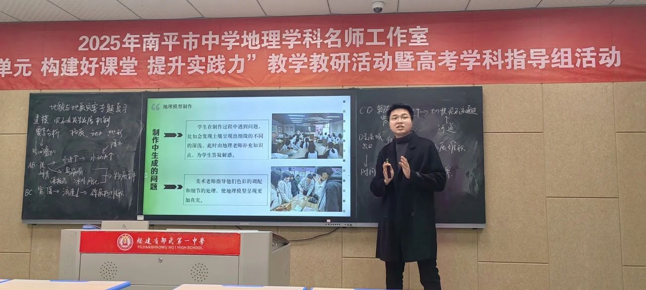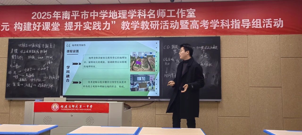 为提高地理教育教学质量,充分发挥南平市高中地理学科指导组及中学地理学科名师工作室的引领作用,南平市教育科学研究院于2025年1月3日成功举办了邵武、武夷山、建阳三市名师工作室教学教研暨学科指导组交流活动,此次活动由我校承办。本次活动以“聚焦大单元,构建好课堂,提升实践力”为主题,通过观课议课、研学实践等形式,为教师们带来一场教学盛宴。