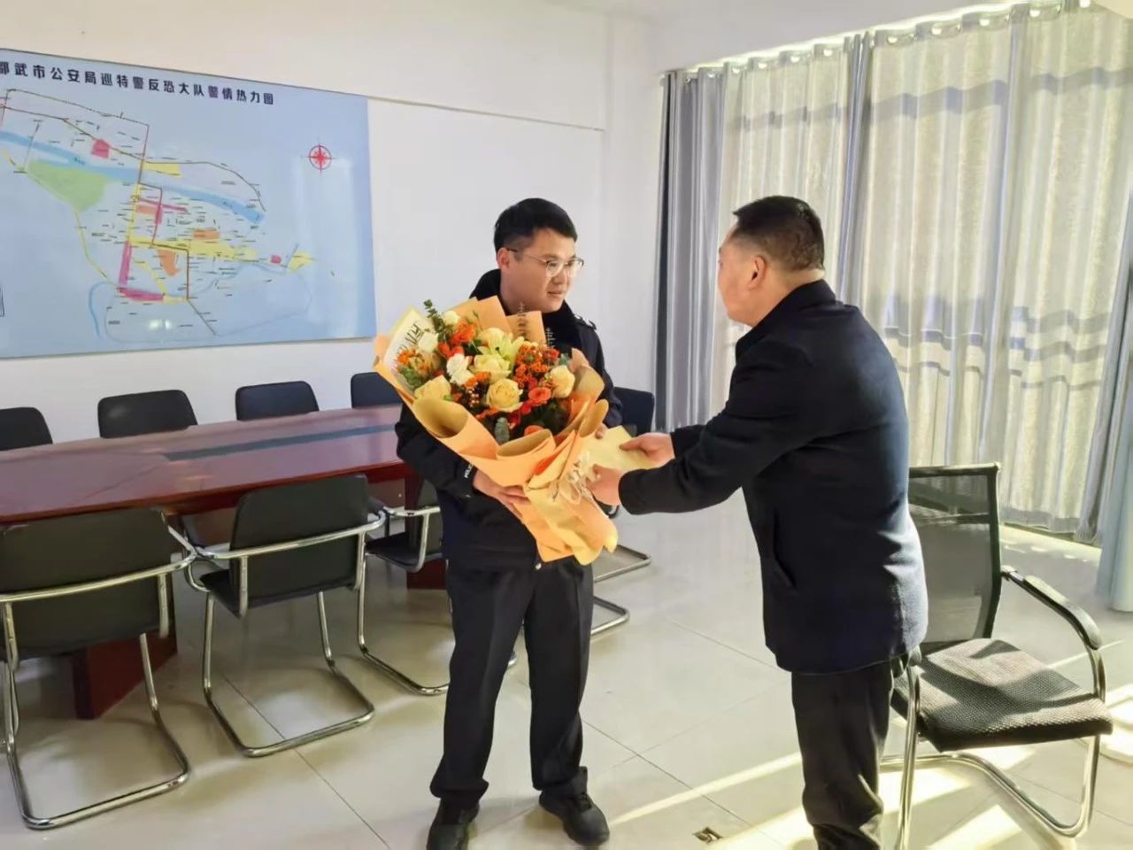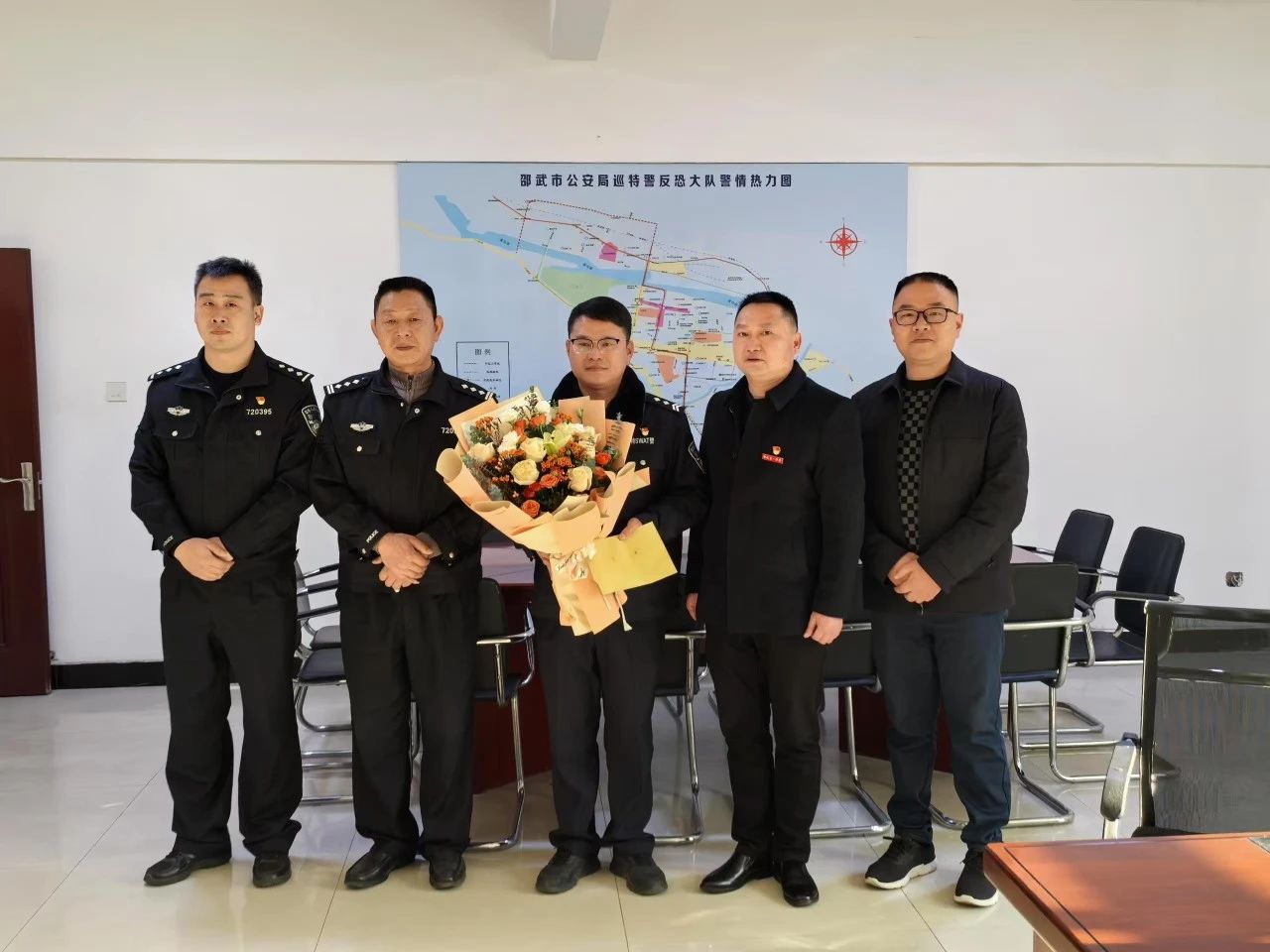 为弘扬尊崇礼遇道德模范等先进典型的良好风尚,树立德者有得的价值导向,形成崇德向善的文明城市氛围。邵武一中校长余国辉、副校长温暖宁等一行4人到邵武市公安局巡特警大队慰问南平市“见义勇为”道德模范梁军。
