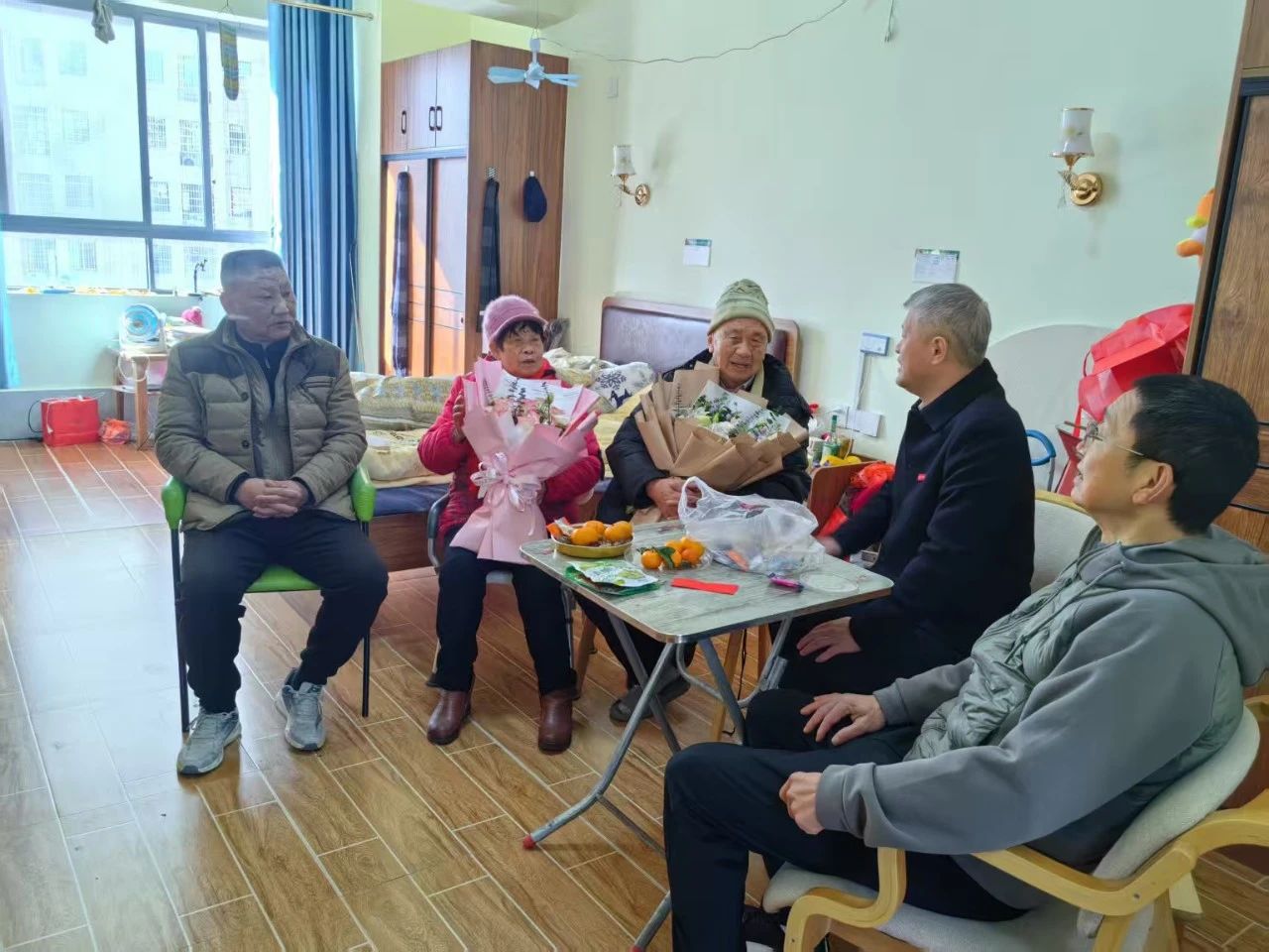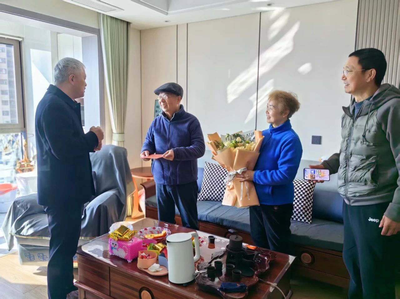 党委书记许俊斌与工会主席吴凯民走访慰问离退休教职工,他们与老教师们围坐在一起,聆听他们对学校发展的建议和期望,感谢他们为学校做出的贡献。