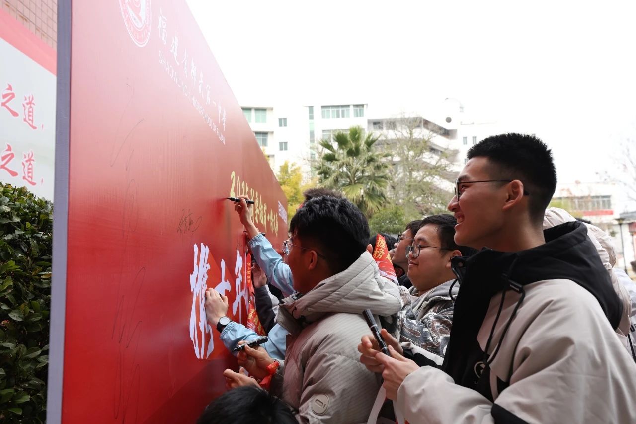 在活动的最后,高三学子以最昂扬的姿态,迈向百日红毯,在签名墙上写下自己的名字。每一个名字都代表着一份承诺与决心,他们将用实际行动证明自己,不负青春,不负梦想!祝愿他们的未来永远热烈滚烫!