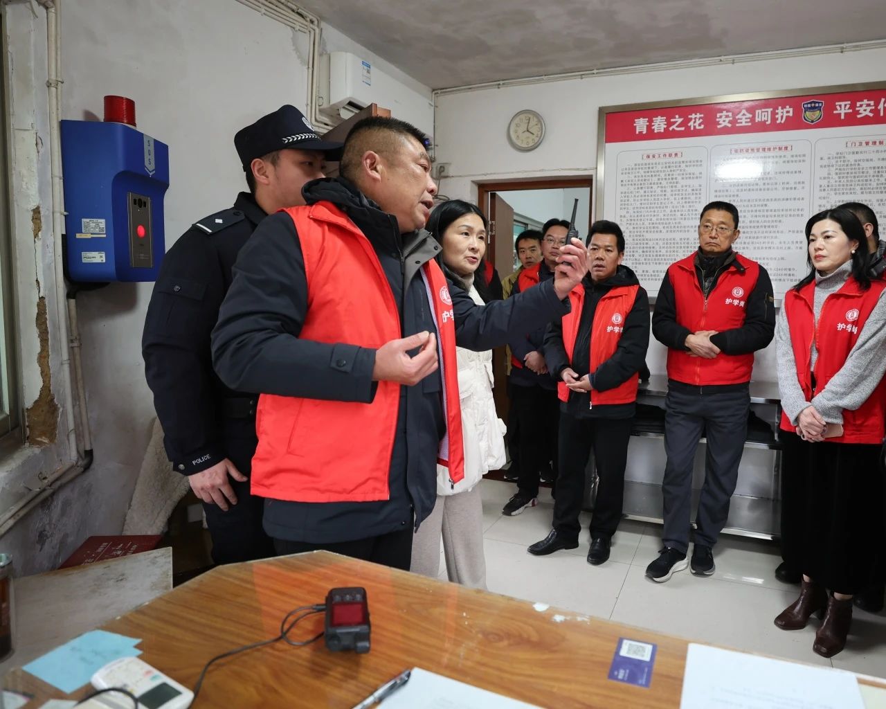 3月31日下午4时,学校组织“护学岗”行政值日人员应急处突培训及实操演练。安保办主任黄小明详细讲解了校园门卫技防设施的功能,并现场演示一键报警系统、防暴盾牌等设备的使用方法。综治副校长吴斌结合真实案例,示范了安防器材的规范操作流程。参训人员在指导下分组进行实操演练,模拟应对突发暴力事件场景。通过此次演练,能够实现“1 分钟自救、3 分钟互救、5 分钟增援到位”的目标。“人防”和“技防”双管齐下,进一步保障了校园和谐稳定。