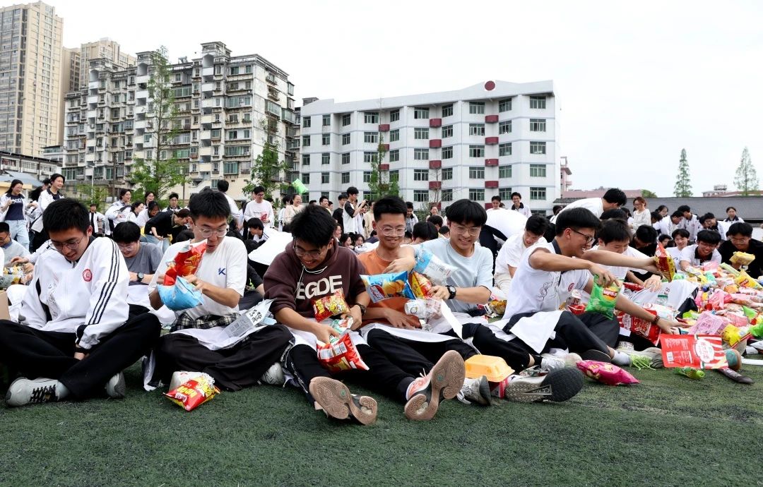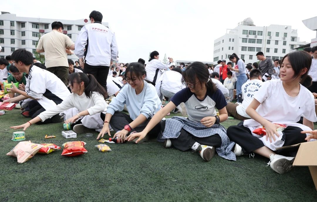 最后的“抢零食大战”更是将活动推向了高潮。同学们分成多组,围绕零食山展开激烈的争夺。无论是传递零食的默契配合,还是搬运零食时的速度与激情,都让同学们在欢笑中释放了压力,增进了友谊。