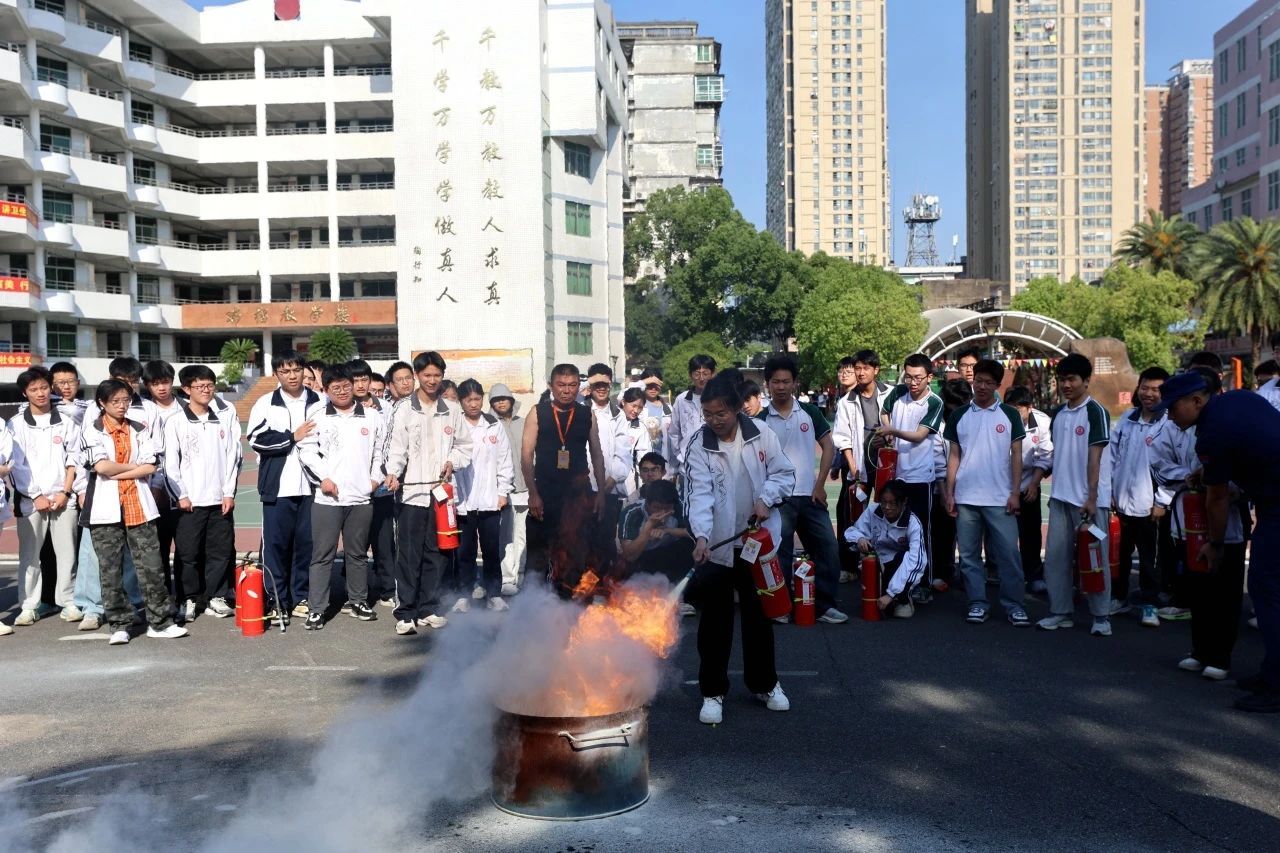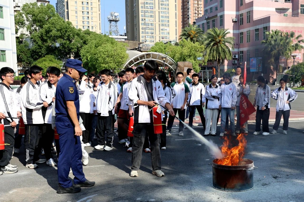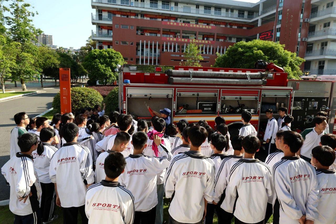 开展消防实操演练,校园消防设施使用学习、消防车设备展示观摩、油盆灭火等实操技能,进一步提升学生消防设施实操能力。