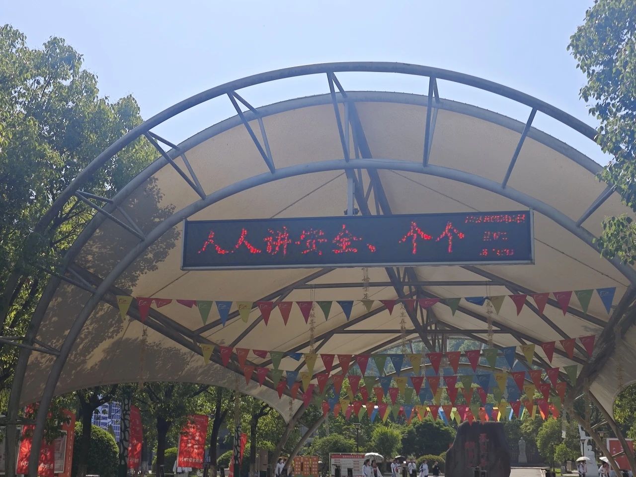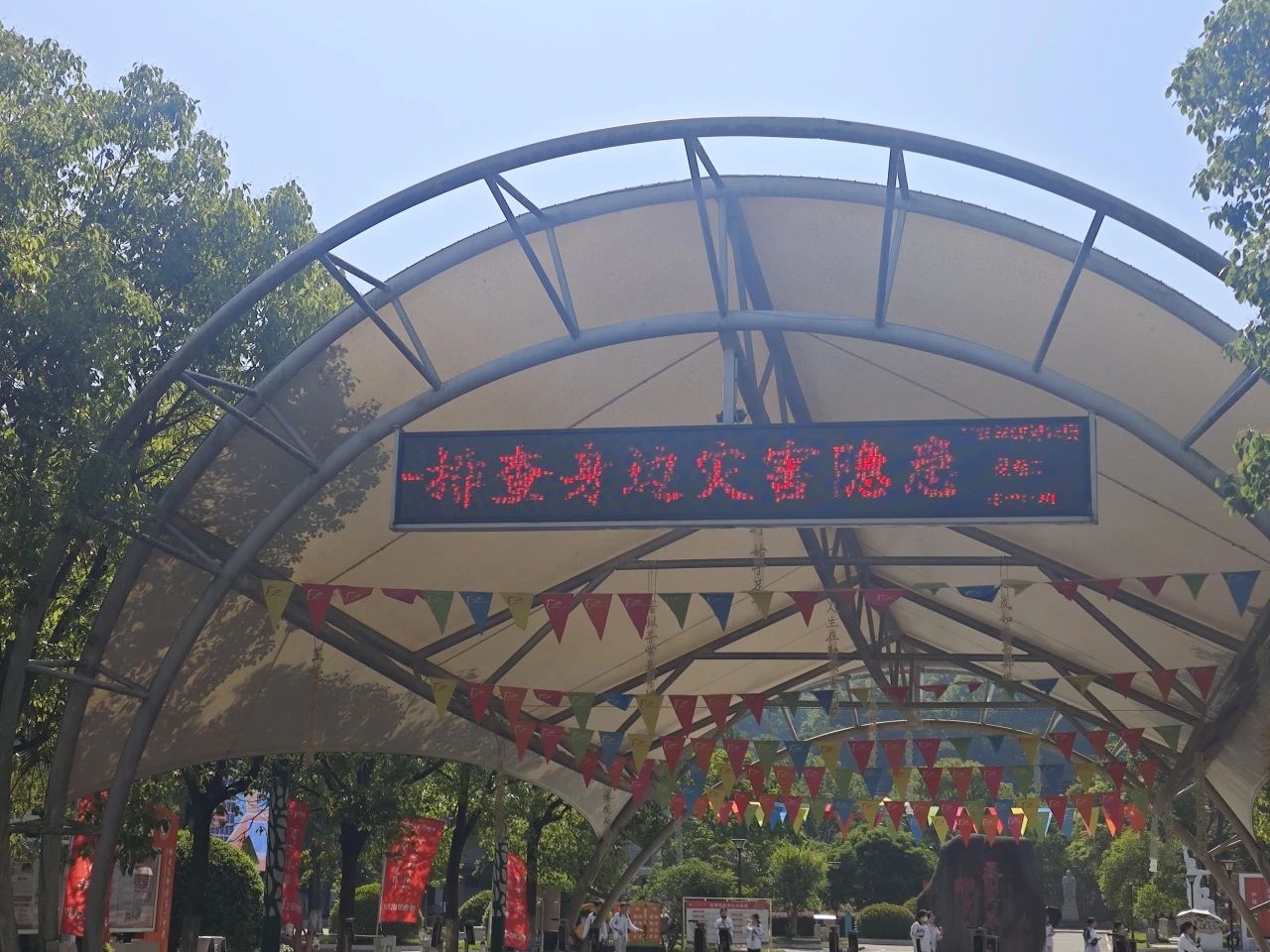 学校LED屏滚动播放防灾减灾宣传视频,直观呈现灾害预警信号识别、家庭应急包配置等知识。同步设置走字标语“人人讲安全,个个会应急——排查身边灾害隐患”,强化主题渗透力。提醒大家从日常细节做起,主动排查教室、宿舍、家庭中的安全隐患,筑牢安全防线。