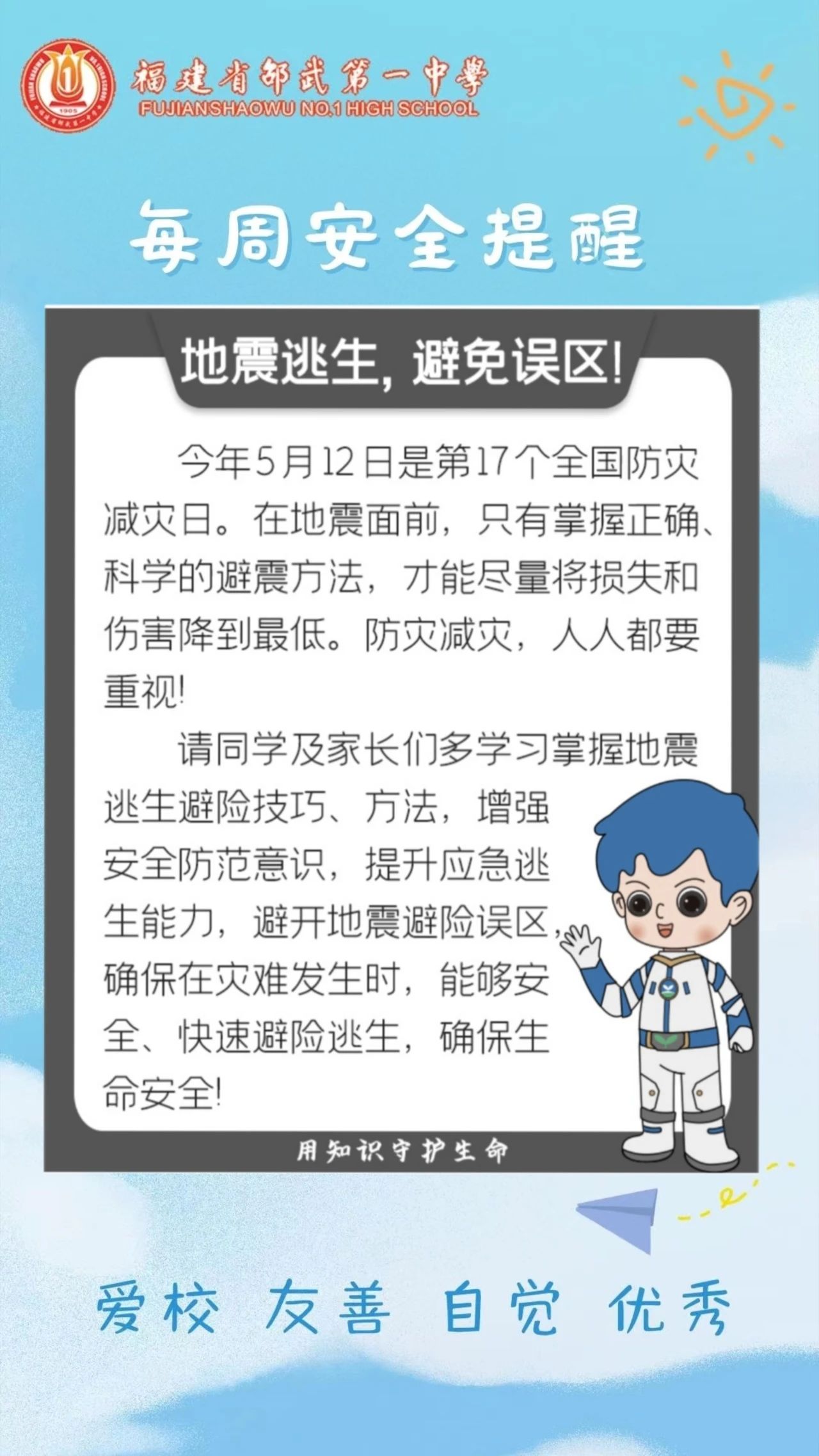 【瑞榴 • 安全】2025年邵武一中开展“防灾减灾宣传周”主题教育活动