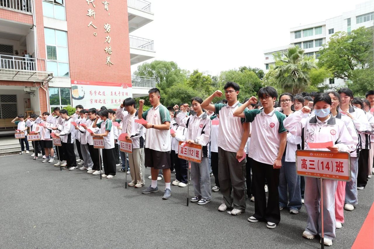 傅钰琳同学带领全体高三学子庄严宣誓,以青春之名立下奋斗誓言;