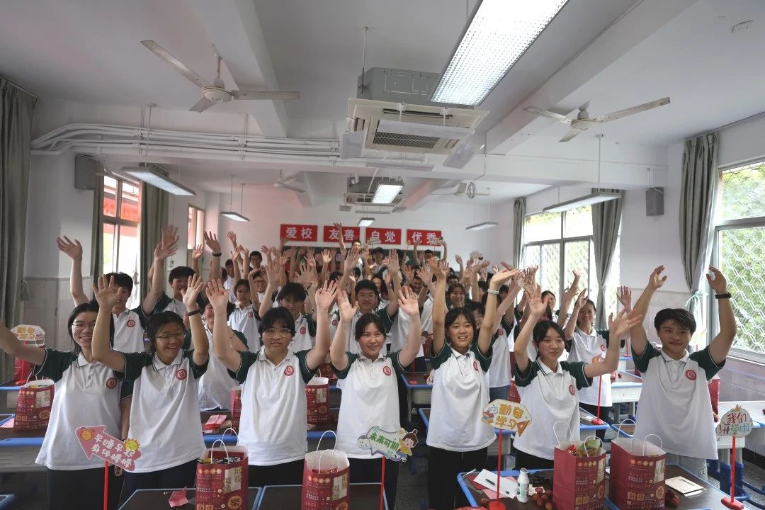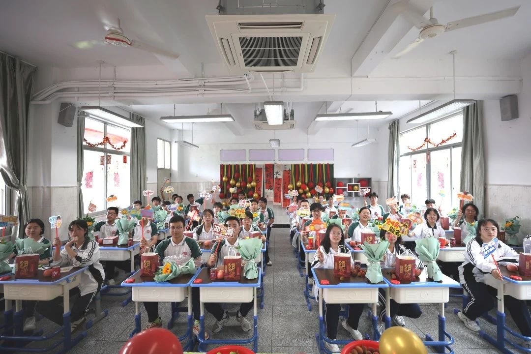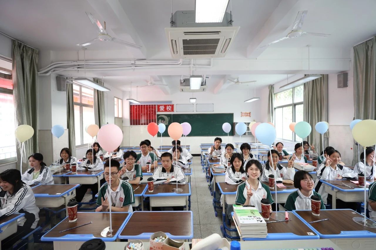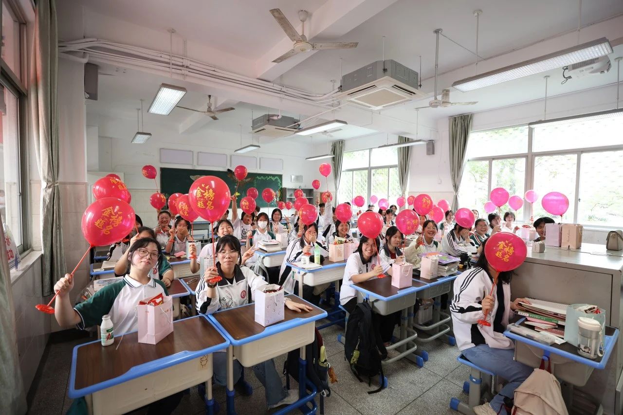 在家长们精心布置的教室里,气球、鲜花与励志横幅营造出温馨而充满斗志的氛围。同学们在教室里庆祝成为新高三学子,青春笑脸定格下梦想启航的珍贵时刻。