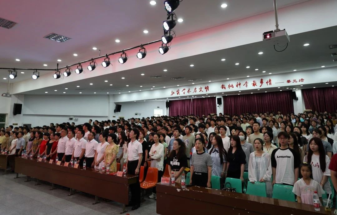 典礼缓缓拉开帷幕。全场起立,庄严的国歌奏响,激昂的旋律回荡在整个报告厅。