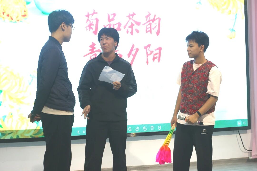 随后进行的“击鼓传花”互动游戏,将现场气氛推向了高潮。伴随着欢快的鼓点,花朵在老人们手中传递,鼓声停歇,接到花朵的幸运者都会收到志愿者制作的小手工礼物,这份充满心意的礼物让老人们笑得格外灿烂。游戏间隙,志愿者们更是贴心地将提前准备的鲜花逐一献到每位老人手中,并附上诚挚的祝福。一束束芬芳的鲜花,一件件充满巧思的手工作品,承载着同学们深深的敬意与关爱,老人们的脸上洋溢着幸福与感动。