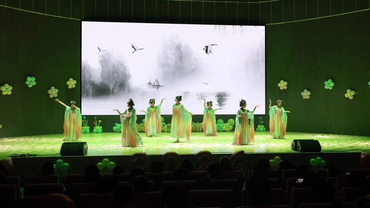 随后,《绿光》《我们的明天》等歌曲合唱温情动人,真挚的歌声传递出对未来的无限憧憬。歌伴舞《改变自己》演绎出了同学们突破自我、向阳生长的昂扬姿态。
