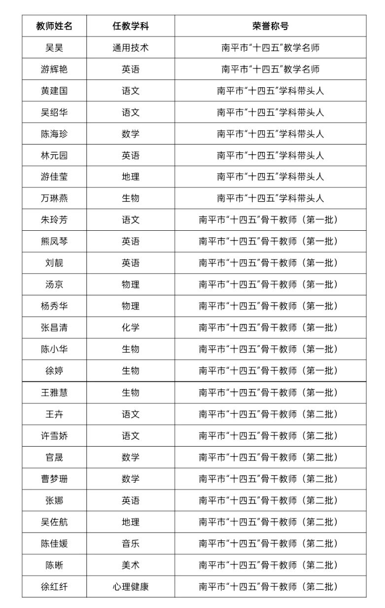 【瑞榴 • 教研】瑞榴结硕果 师者展风华——热烈祝贺我校26位教师获评南平市“十四五”教学名师、学科带头人、骨干教师称号