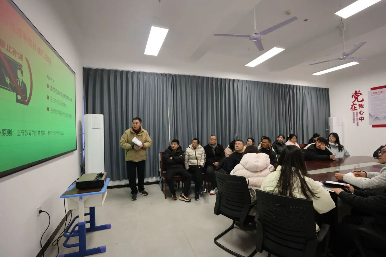下午3时30分,年段教师大会在五楼党员活动室召开。副校级教研员汤凌围绕工会相关工作进行总结复盘;执行副书记张国平聚焦教学教研与师德师风建设作工作部署;执行副校长唐建友从德育工作、安全、心理健康教育三大维度梳理工作成效与不足;执行校长黄辉对学校整体工作进行全面统筹总结;最后,余国辉校长针对初中部教育教学发展,提出下一阶段的具体规划,明确了新学期工作思路,为下一阶段学校教育教学工作指明方向。