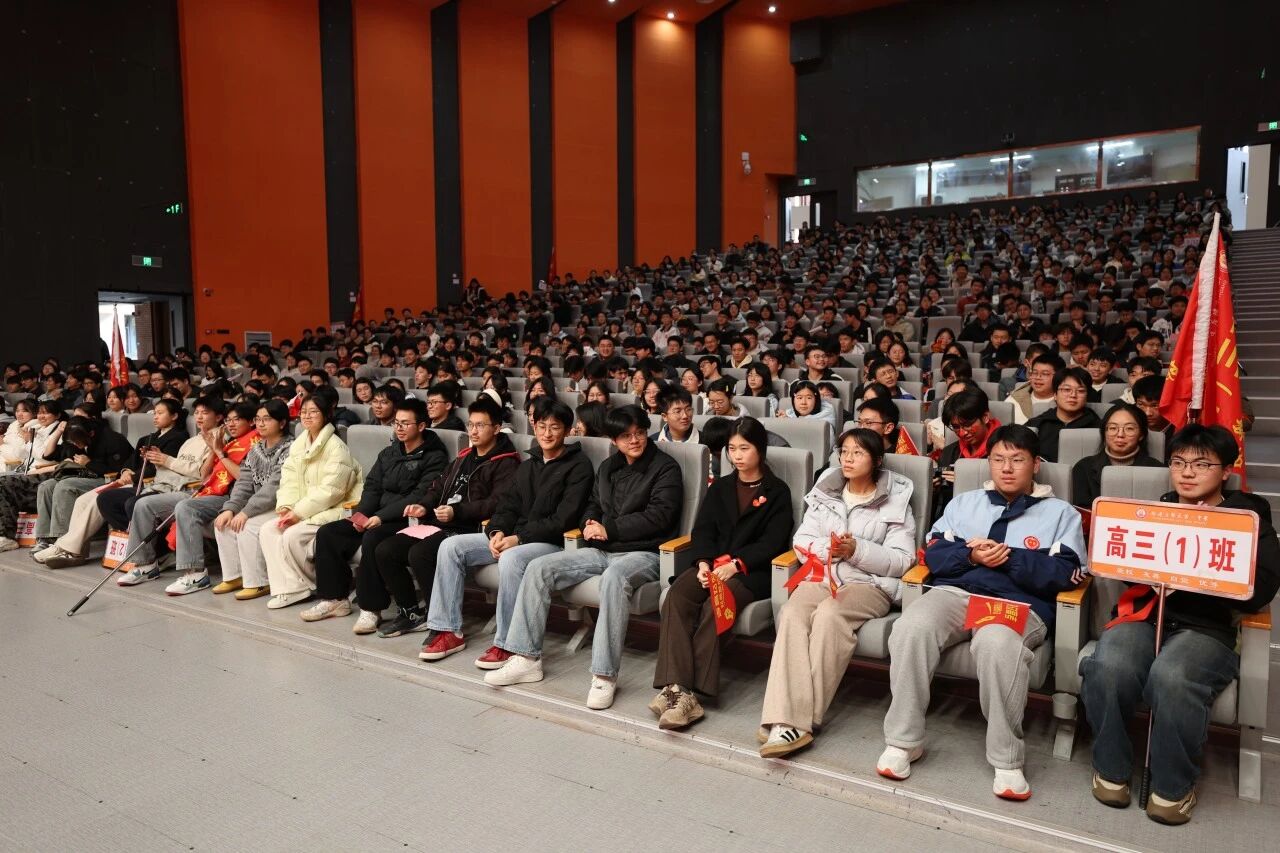 余国辉校长作冲刺动员讲话,向全体高三教师、家长致以敬意与感谢,为学子送上鼓舞与期许。他以国家科技突破、冬奥健儿拼搏事例激励学子,号召将个人梦想融入时代洪流,以校内优秀学子为榜样,以笔为剑、以志为帆,百日砺行、六月圆梦。
