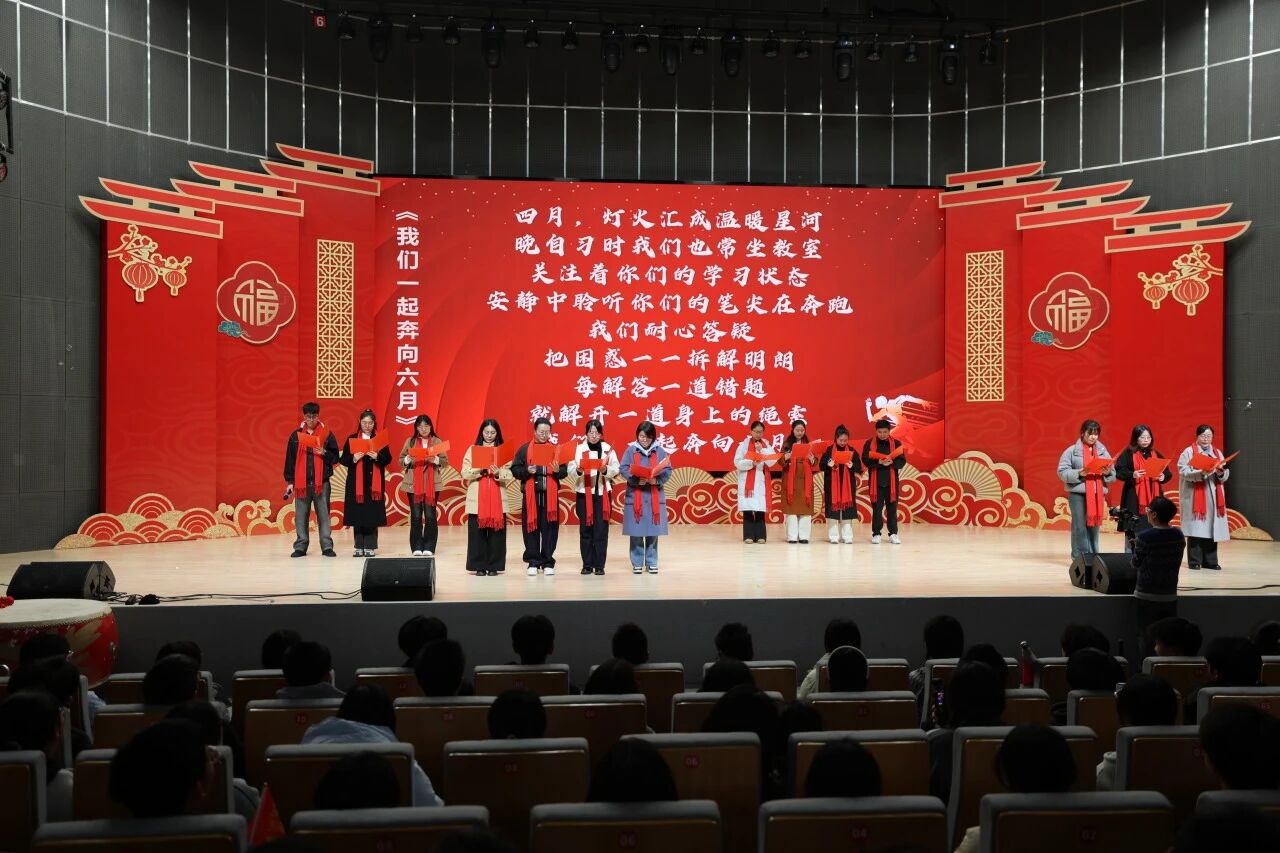 全体班主任诗朗诵《我们一起奔向六月》,誓做点燃学子奋斗长夜的不灭灯绳。