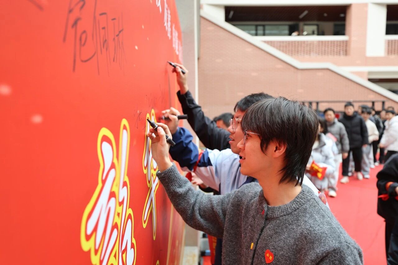 师生共踏状元红毯,在"梦想墙"上写下誓言。