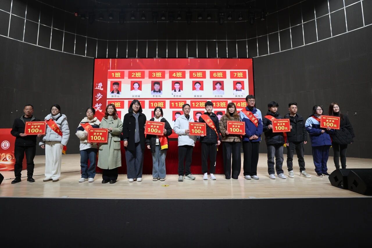 3月 4 日,高一年段期末考试表扬大会在章堪・里仁艺术中心举行。全体同学在高一(1)班杨梓杰带领下庄严宣誓,尽显青春奋进风貌。刘靓段长宣读表扬名单,与会领导及家长代表为获奖学生、学习标兵班级颁奖,营造比学赶超的浓厚学风。高一(1)班傅若瑜作为学生代表,分享课堂专注、错题整理等实用学习方法。吴佐航段长作学期总结与新学期展望,勉励学子重视细节、严守纪律、脚踏实地求进步。余国辉校长作总结讲话,肯定学子成绩,强调考试是阶段性成果,并提出三点希望:收心归位、调整状态;志存高远、追求卓越;勤学笃行、全面发展,成长为新时代优秀青年。以析促教,以奖励行。