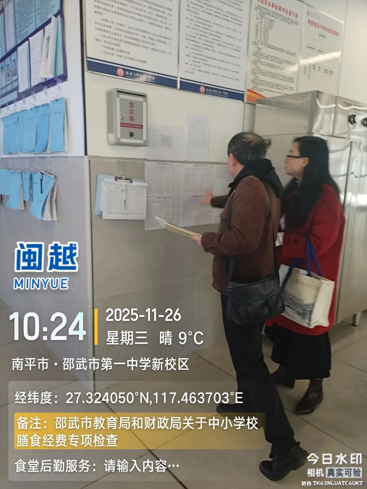 为严格落实《邵武市教育局 邵武市财政局关于转发南平市教育局南平市财政局关于印发南平市中小学学校食堂财务管理工作指引(试行)的通知的通知》(邵教计〔2025〕40号)文件要求,邵武一中高度重视膳食经费规范管理工作,于2025年11月19日至24日期间,对照膳食经费自查表逐项开展认真自查,全面梳理食堂财务管理、食品安全责任落实等情况。11月26日上午,邵武市教育局副局长邱伟明、财政局副局长沈文星带队,联合教育局计财股、安全股、装备站及财政局核算中心相关工作人员组成专项检查组,莅临邵武一中开展膳食经费专项检查。检查组重点围绕膳食委员会建立及履职、合同条款明确性、饭菜价格公示、伙食费收支管理、财务岗位设置及信息公开等核心内容,通过查阅资料、实地查看、沟通问询等方式进行细致核查。 此次专项检查既是对一中膳食经费管理工作的全面检验,也为规范食堂运营、保障师生合法权益提供了有力指导。邵武一中将以此次检查为契机,针对发现的问题立行立改,持续健全膳食经费管理长效机制,切实规范食堂运营管理。