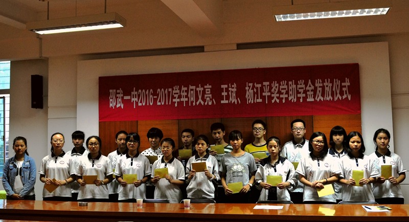 邵武一中举行2016-2017年何文亮、王斌、杨江平奖学助学金发放仪式