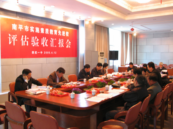 4月12日南平市实施素质教育先进校评估验收组一行5人来到邵武一中进行评估验收。验收组先听取了范纯善校长作的《邵武一中实施素质教育工作汇报》,随后通过查材料,召开座谈会等形式对一中创建素质教育先进校工作进行了认真的评估验收。验收组一致认为邵武一中在创建素质教育先进校进程中领导重视,工作扎实,措施得力,可以通过南平市素质教育先进校评估验收。