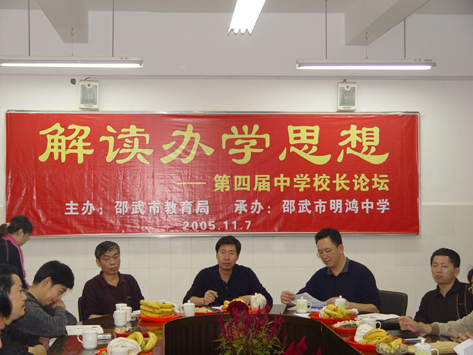 11月7日下午,由市教育局主办、明鸿中学承办的“邵武市第四届‘中学校长论坛’”会议在我校顺利召开。 会议围绕“解读办学思想”这一主题,各中学校长就自己学校的办学思想、学校定位,以及为此采取的措施等方面分别进行了发言。明鸿中学校长林阳作了题为“阳光监督”的专题讲话,具体介绍了学校目前实施的管理监督机制“上帝管理法”。邵一中校长范纯善就如何在现有办学条件和师资的基础上充分利用有限的资源等问题进行了深刻分析;四中、六中、七中、三中、二中等各中学校长分别从学校的办学目标与方向、师资队伍的建设、学生能力的培养、新课改形式下的教学等问题进行了深入地探讨与交流。 此次中学校长论坛为交流各校的新思路、新举措搭建了一个自由、宽松的谈论平台,为促进我市中学管理水平提高到一个新的层次提供了保障。 市教育局熊元龙局长、黄二华副局长及全市各中学的校长参加了这次会议,会议由市教育局黄副局长主持。