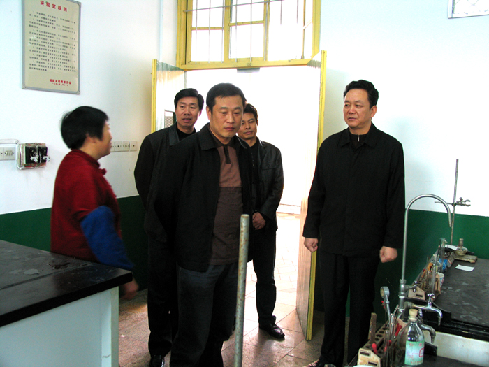 11月24日,梁伟新书记在宣传部长刘腾发、教育局长熊元龙的陪同下来校视察,就学校教学楼的使用状况、理化生实验室的建设和学生宿舍楼的使用状况进行实地考察。