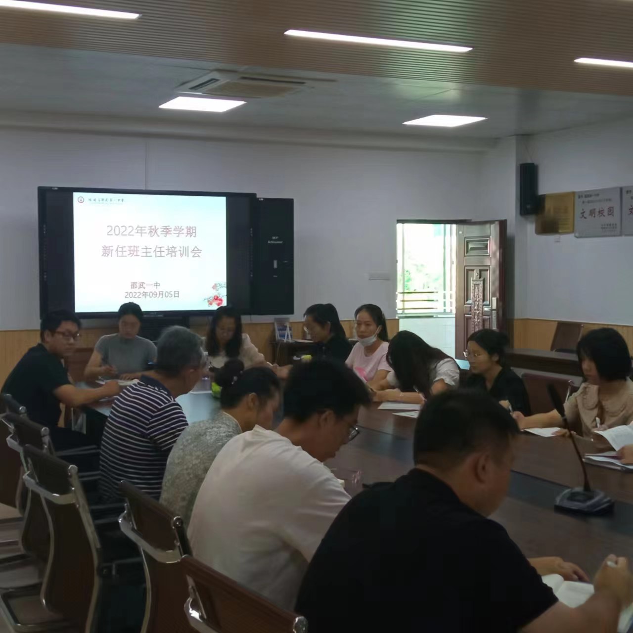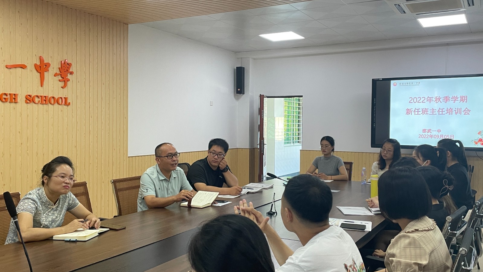 为提升我校新任班主任队伍的管理水平,建设高质量班主任队伍,9月5日上午,邵武一中在校行政会议室召开了2022年秋季学期新任班主任培训会。邵武一中党委副书记杨方、政教处副主任黄芳、全校新任班主任老师一起参加培训会,培训会由政教处主任赵纯锋主持。