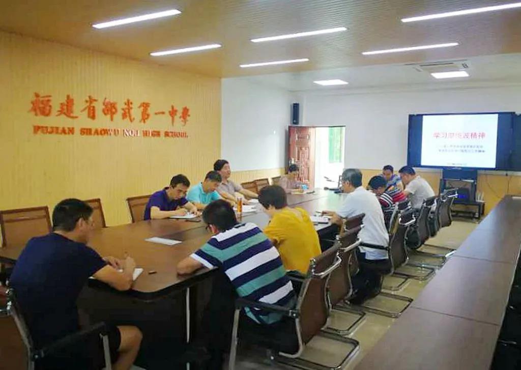 为了深入贯彻落实省委意识形态专项巡视反馈问题整改精神,2020年6月12日下午,邵武一中党委在校行政会议室开展“深化学习廖俊波精神,扎实推动学校教育教学发展”的中心组学习。会上郭胜光书记提出一要学习廖俊波的敬业、担当、善于学习、善于提升的工作态度,二要学习廖俊波的“深入调研,科学规划”的工作方法。会上全体党委委员就这两个方面展开了广泛而充分的讨论。