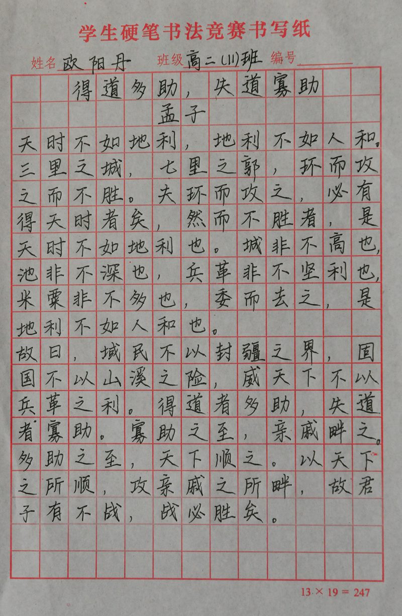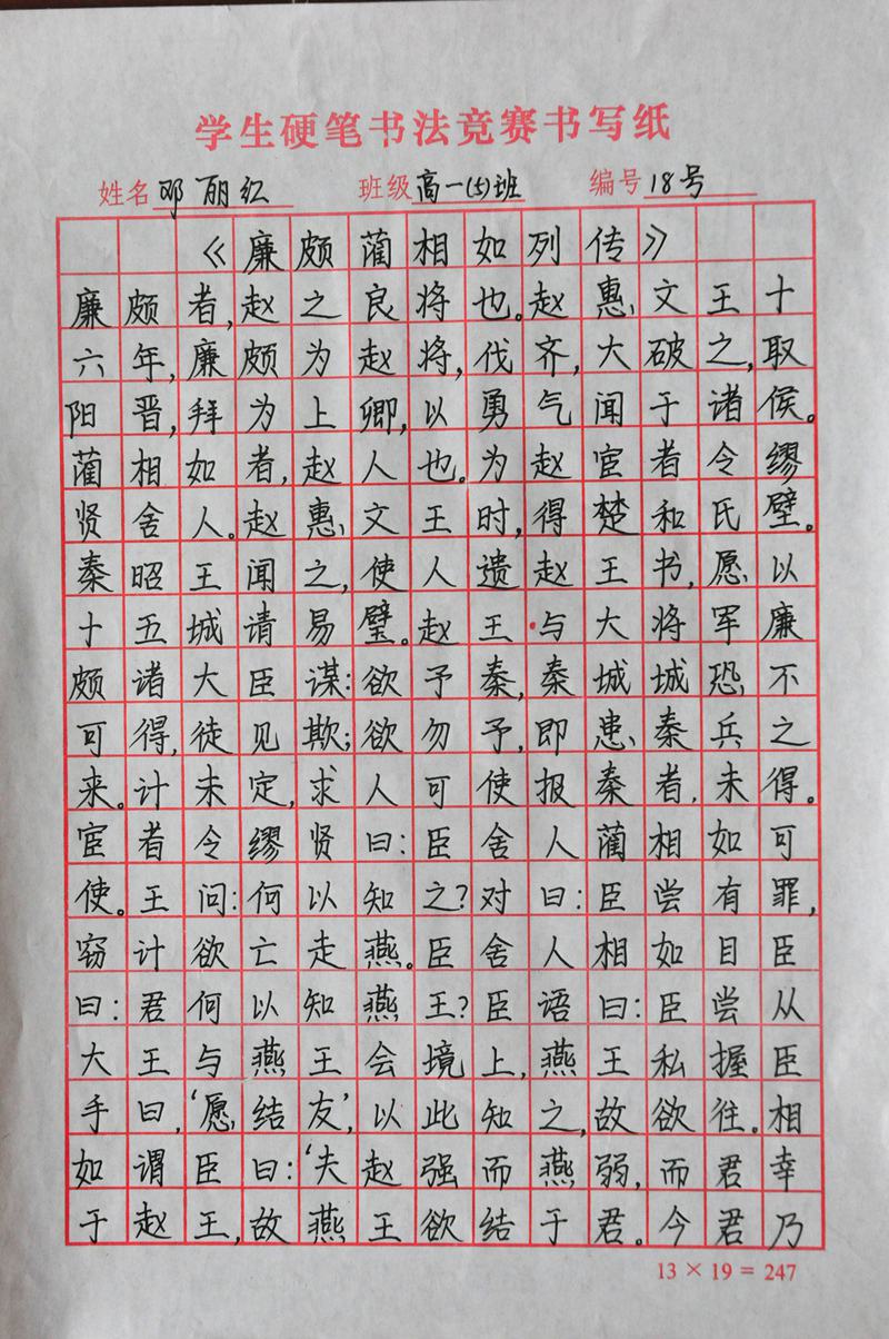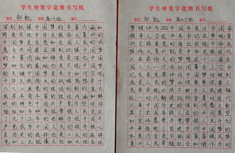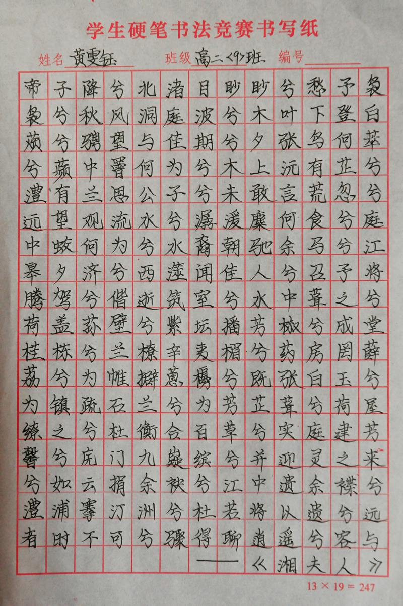 墨香书法展示活动硬笔书法评选结果