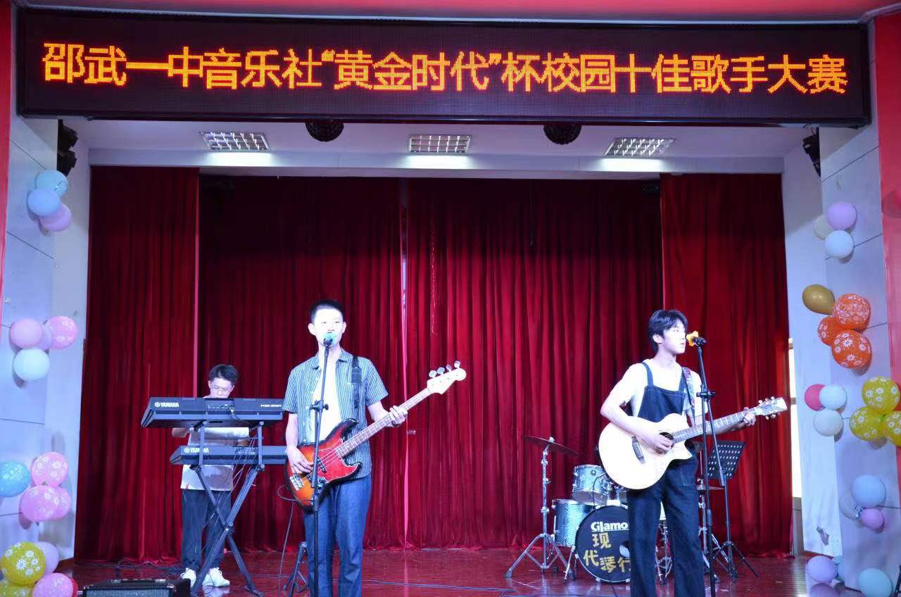 2020年7月14日,由邵武一中音乐社举办的首届“黄金时代杯”校园十佳歌手大赛决赛在邵武一中学术报告厅成功举办。在此之前,音乐社已于6月13日举行海选比赛,成功选出了十九名优秀的校园歌手进入决赛。决赛由五位评委老师和大众线上投票综合评分,选出最后的校园十佳歌手。其余入围选手将获入围奖。比赛由音乐社的同学的乐队表演拉开帷幕;歌手们演唱的一首首动听的歌曲不禁令人沉醉其中,遐思翩翩;浔艺舞蹈社的表演更是让大家大饱眼福,实是赏心悦目。本次活动既为同学们提供了一个展示自我的平台,让同学们在学校的舞台上完成自己音乐上的小小梦想,同时也为大家的暑期生活增添光彩与情趣,让大家看到音乐的动人之处。