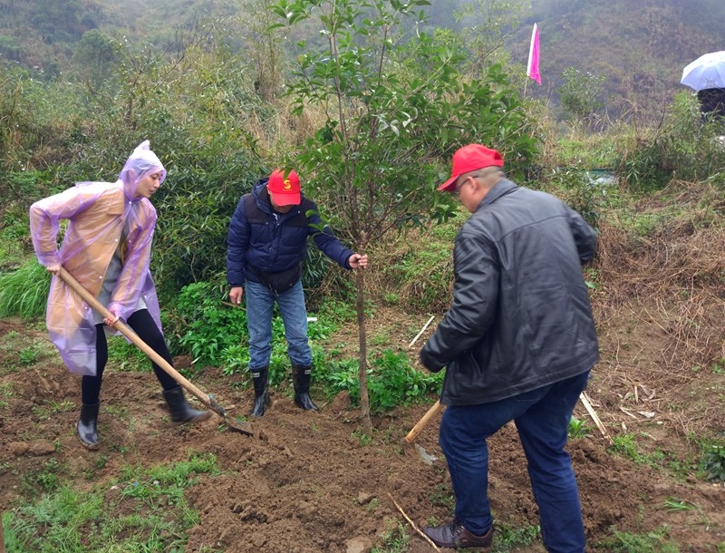 当天上午,青年志愿者到达植树地点后,分成若干小组,齐心协力扶直树苗、挥动锄头,细心填土,各个环节有条不紊。扶苗、培土、浇水,老师们干劲十足地用铲子和锄头种下了一株株树苗,将充满生气的绿色留给了脚下的土地。