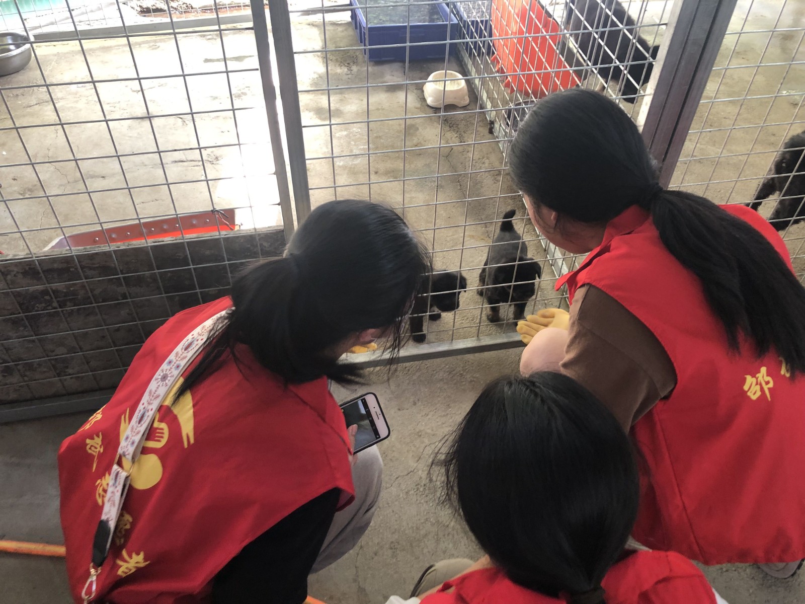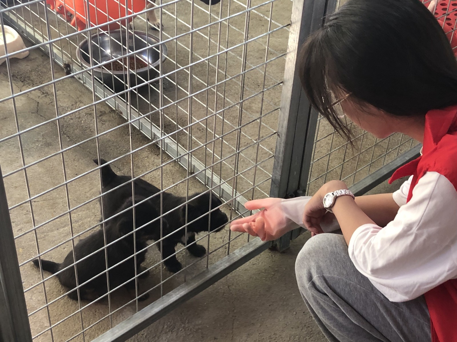 学生和老师穿着活动工作服和帽子,然后乘坐公交到达流浪狗基地前去志愿,在这几个小时里,我们参与了抚摸流浪狗,与它们玩耍,为工作人员分担工作等工作。在这个过程中,流浪狗都很热情。随后工作人员与我们讨论流浪狗吃的粮食,并且把几只小狗抱出来,志愿者很小心翼翼地抱起小狗,摸它们的头,为它们取名。途中,我们也发现这群流浪狗之前可能是很缺乏关爱的,当我们摸它们的头时,它们总会开心地蹲下身子。同时它们一直都对人类很友好,当我们触碰它们时,它们没有表现出抗拒的行为,并且也不会对志愿者进行过激的动作,我认为大家不应该对流浪狗带有偏见,应对它们有关爱之心
