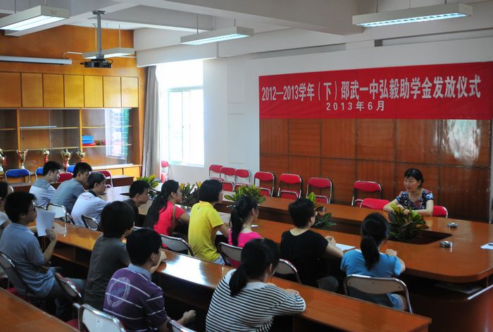 2013年6月,邵武一中在校二楼行政会议室举行弘毅助学金发放仪式。仪式上,18名品学兼优的在校生共获得了24000元的资助,政教处主任李秀林老师引用:“士不可以不弘毅,任重而道远---《论语泰伯》”进一步勉励受助同学增强信心和力量,自强不息、立志成才,以优异的成绩报答热心于慈善事业的企业家和社会各界人士。