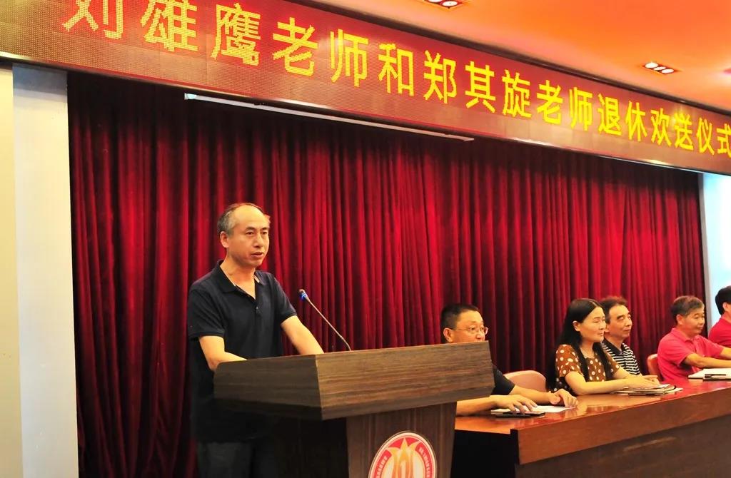 大会伊始,邵武一中全体教职工为刘雄鹰和郑其旋两位老师举行了退休欢送仪式,并由吴萌校长与郭胜光书记分别为两位老师献上退休礼品和鲜花,衷心感谢两位老师多年来为学校做出的贡献,并祝福他们开始自己全新的人生规划,同时也希望两位老师能继续关心、关注邵武一中的发展。