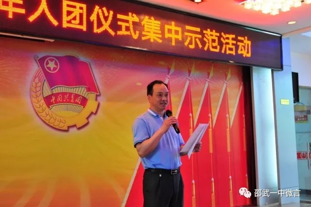 活动由校团委主持,参加本次活动的有邵武市宣传部严军部长、教育局党组专职副书记吴其忠、团市委林敏书记、邵武一中郭胜光校长、各乡镇机关、企事业单位团委负责人、邵武一中100多名老团员和18位新团员。