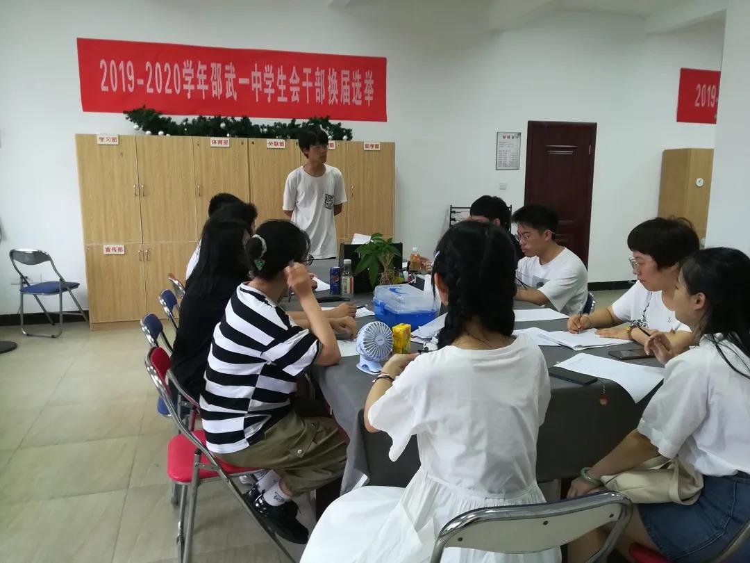 6月19日下午,2019-2020学年邵武一中学生会换届竞选大会在学生会办公室顺利举行。出席本次换届大会的团委老师有王雅慧书记、池俊副书记、王卉老师,团委老师同学生会各部门副部长共同组成评审团。